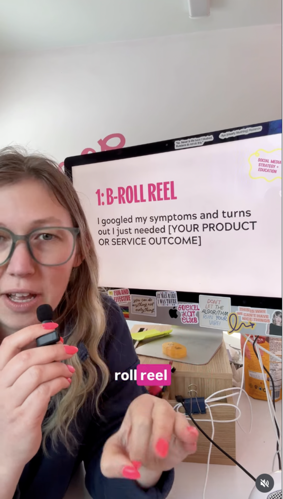 Short clips of you going about your day — no talking required. Film your hands, your workspace, your process. Add a strong hook as text on screen and trending audio. These are fast to create once you have a library of clips saved.
